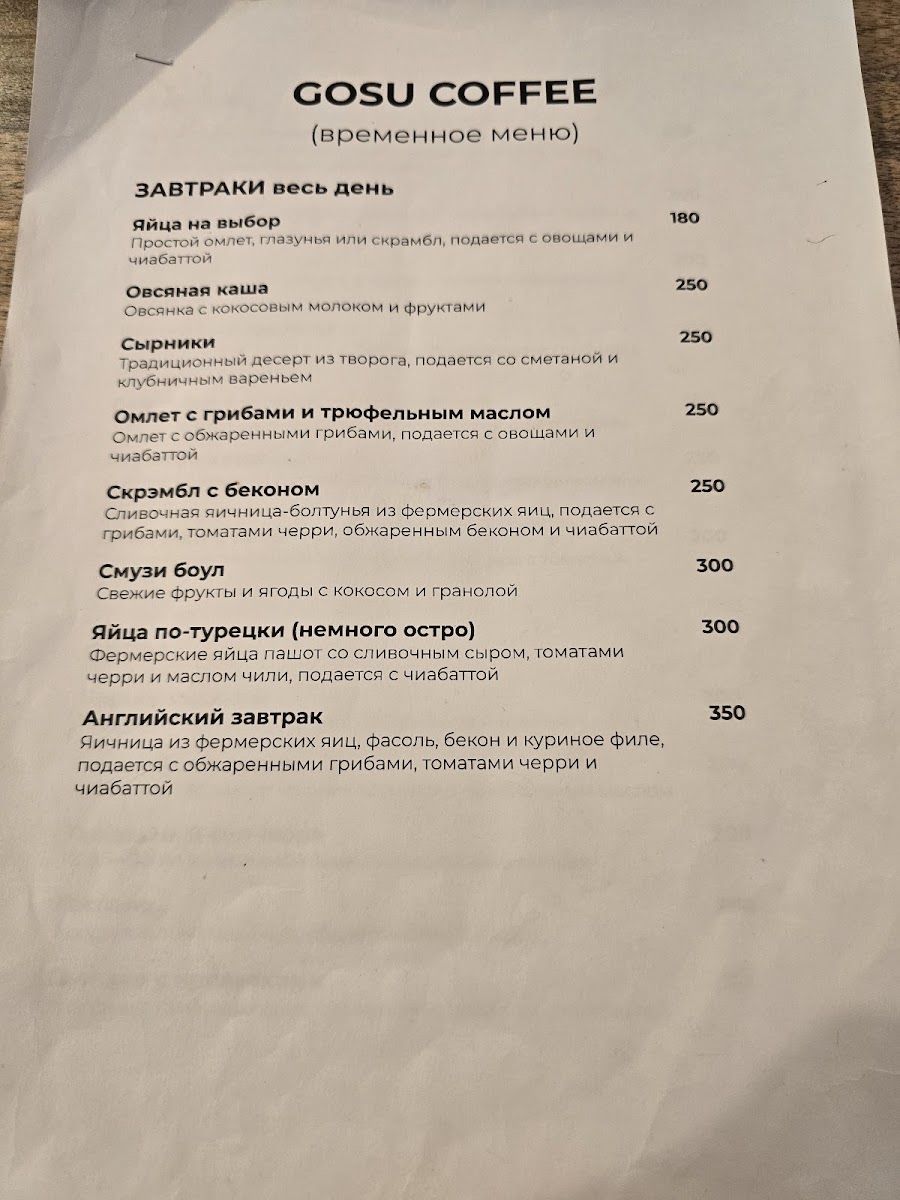 Gosu Coffee offers a menu that tantalizes the taste buds and encourages patrons to explore a variety of delightful options. For those seeking something light and refreshing, their salads, such as the Total Green Salad and the Seafood Green Salad, promise a burst of flavor with every bite. However, the café truly shines with its all-day breakfast offerings. Imagine waking up to the rich, comforting Mushroom Omelette with Truffle Oil or indulging in the decadently creamy Syrniki. For something sweet, don’t miss the Banoffee Pie, which one satisfied customer described as “absolutely heavenly.”